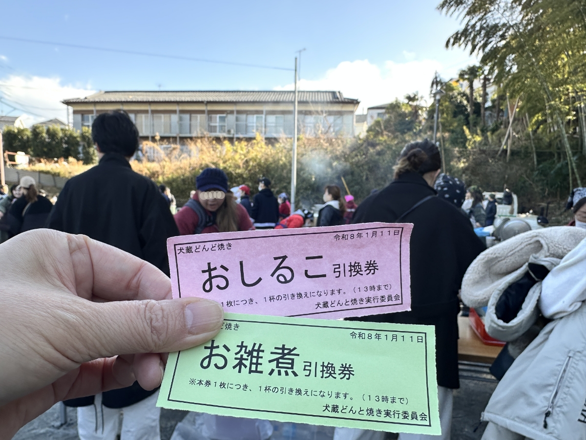 会長から渡された引換券は2枚。「おしるこ」と「お雑煮」。