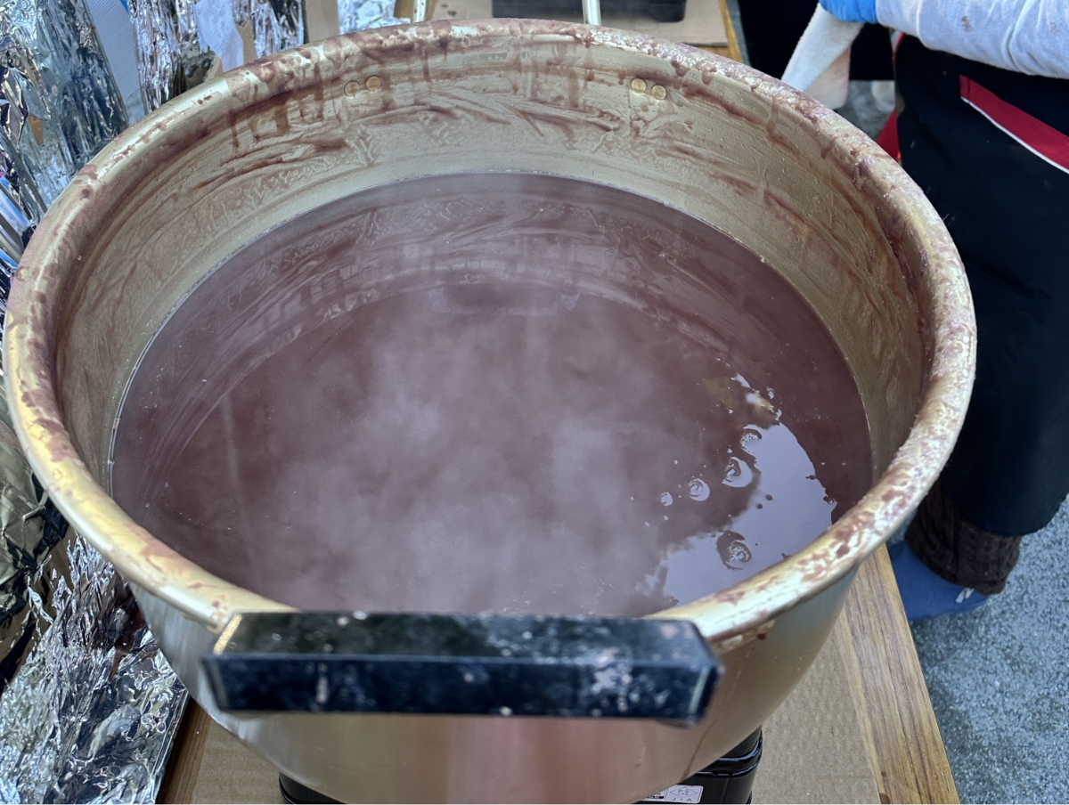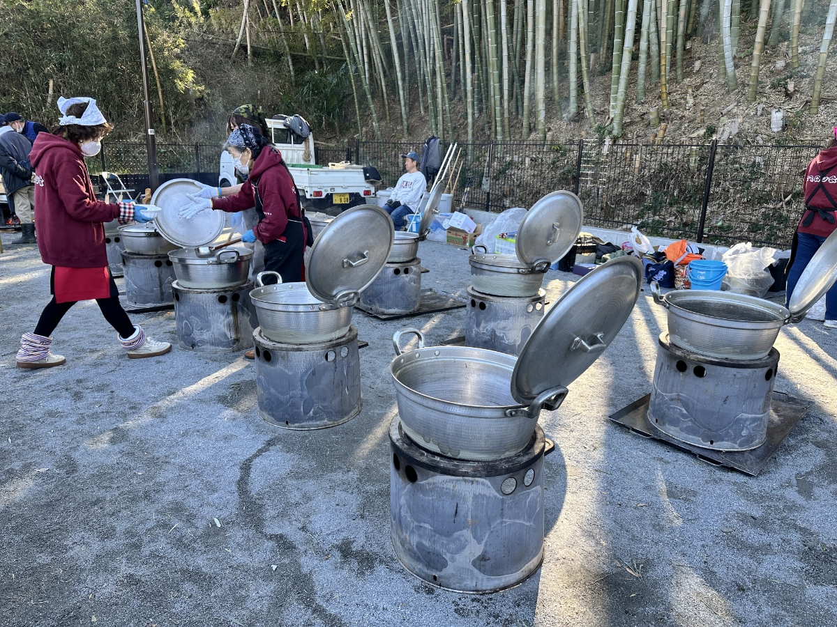 美味しいお餅に気を取られている間にお雑煮の鍋は次から次へと空になり、お焚き上げしていた正月飾りなども少なくなっていました。